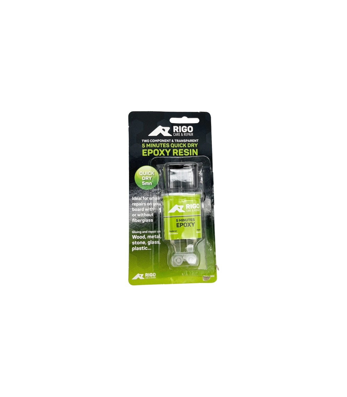 El kit de reparación epoxi RIGO es ideal para reparar tablas de windsurf o embarcaciones. El material de reparación incoloro y transparente de dos componentes no oculta ningún diseño y también es adecuado para reparar daños importantes en combinación con tejido de fibra de vidrio.