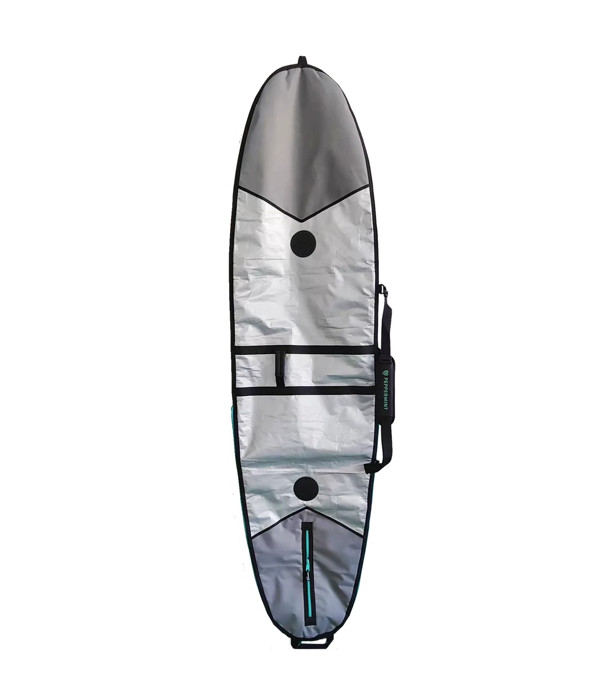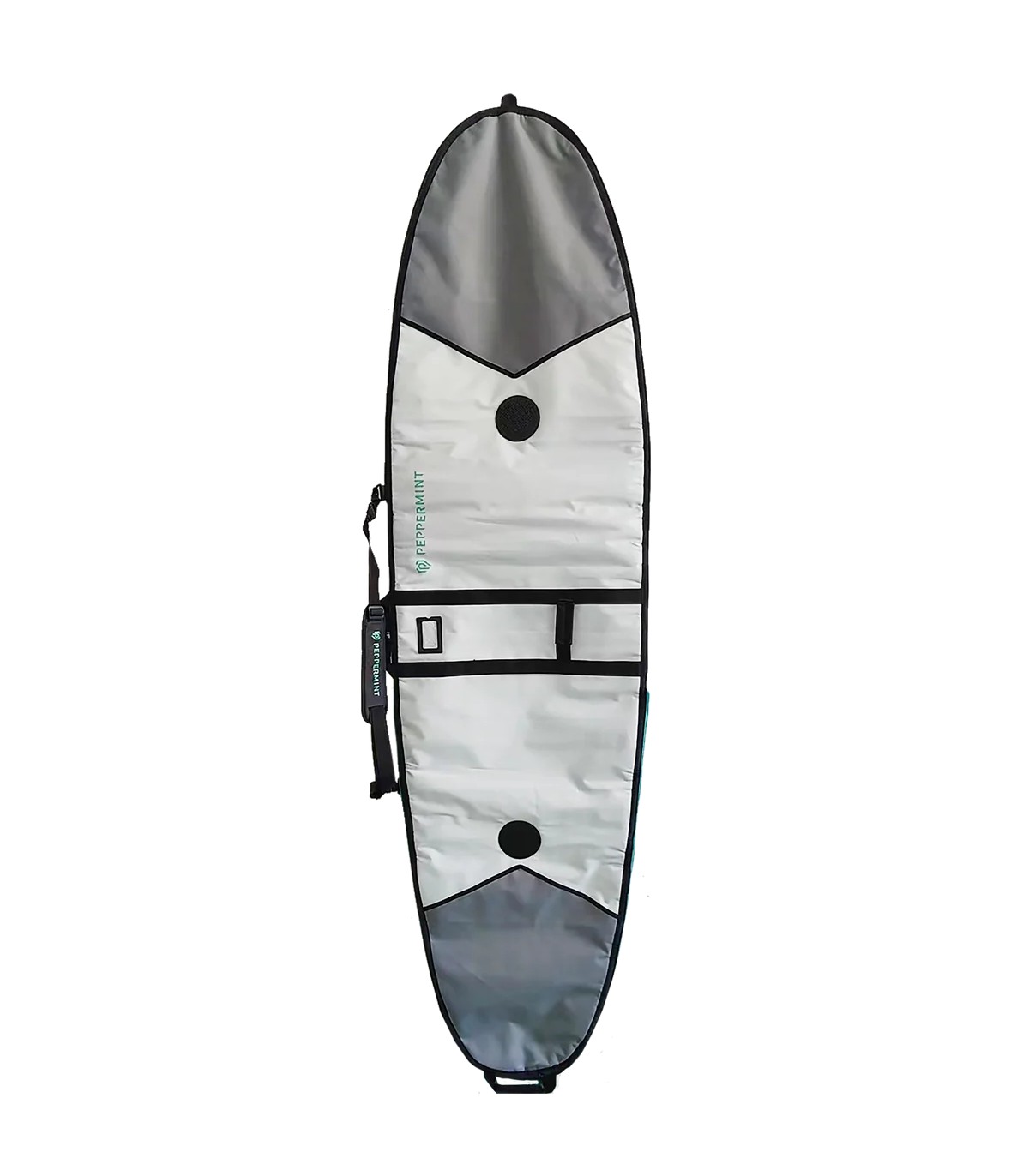Nuestra funda premium Peppermint ofrece una protección máxima para tu tabla de surf durante tus desplazamientos o simplemente para guardarla en casa. Fabricada con esmero, cuenta con un acolchado de 6 mm para protegerla de los impactos, un tejido impermeable y reflectante del calor en el lado de la carena para protegerla del sol, y antiabrasión en el lado del deck, además de refuerzos en ambos extremos.