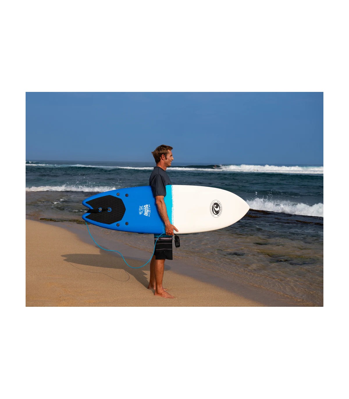 La tabla de surf CBC 6'2 Sushi Soft es una de nuestras mejores ventas. Esta tabla de surf con cubierta de espuma tiene un núcleo de espuma 100% impermeable con alma de madera laminada moldeada para mayor estructura y flexibilidad. También cuenta con un carena lisa de polietileno con grafico y un deck pad bajo el pie trasero que ayuda con proporciona agarre. Dado que la Sushi es una tabla corta, es mas adecuada para surfista ligero que recién está aprendiendo a surfear o para surfero de mas peso pero con nivel tecnico avanzado. Cuanto más pesado sea el rider, más habilidad necesitará para flotar y maniobrar una tabla pequeña y corta como esta. El Sushi viene con 3 aletas de surf y una correa de surf de PU.