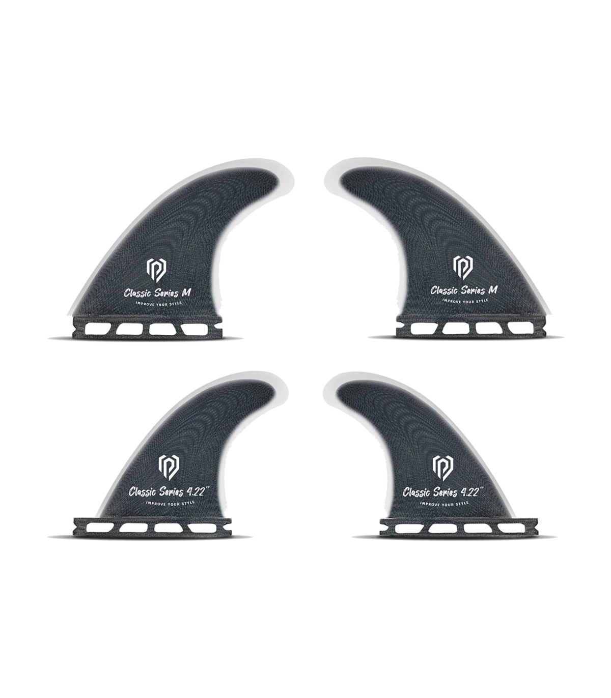 Nuestro juego de aletas Quad se beneficia de una plantilla todoterreno: sencilla, consistente y eficaz para surfear con total confianza. La construcción de fibra de vidrio multicapa proporciona una sensación de equilibrio para máxima versatilidad y rendimiento en una amplia gama de condiciones. Este juego de 4 quillas te brindará el equilibrio perfecto entre velocidad y control.