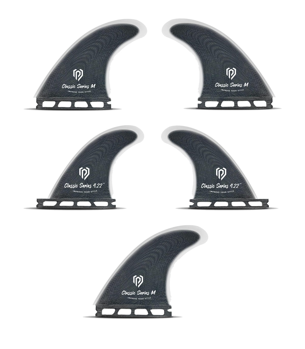 Nuestro juego de aletas Tri / Quad se beneficia de una plantilla todoterreno: sencilla, consistente y eficaz para surfear con total confianza. La construcción de fibra de vidrio multicapa proporciona una sensación de equilibrio para máxima versatilidad y rendimiento en una amplia gama de condiciones. Este juego de quillas te brindará el equilibrio perfecto entre velocidad y control.