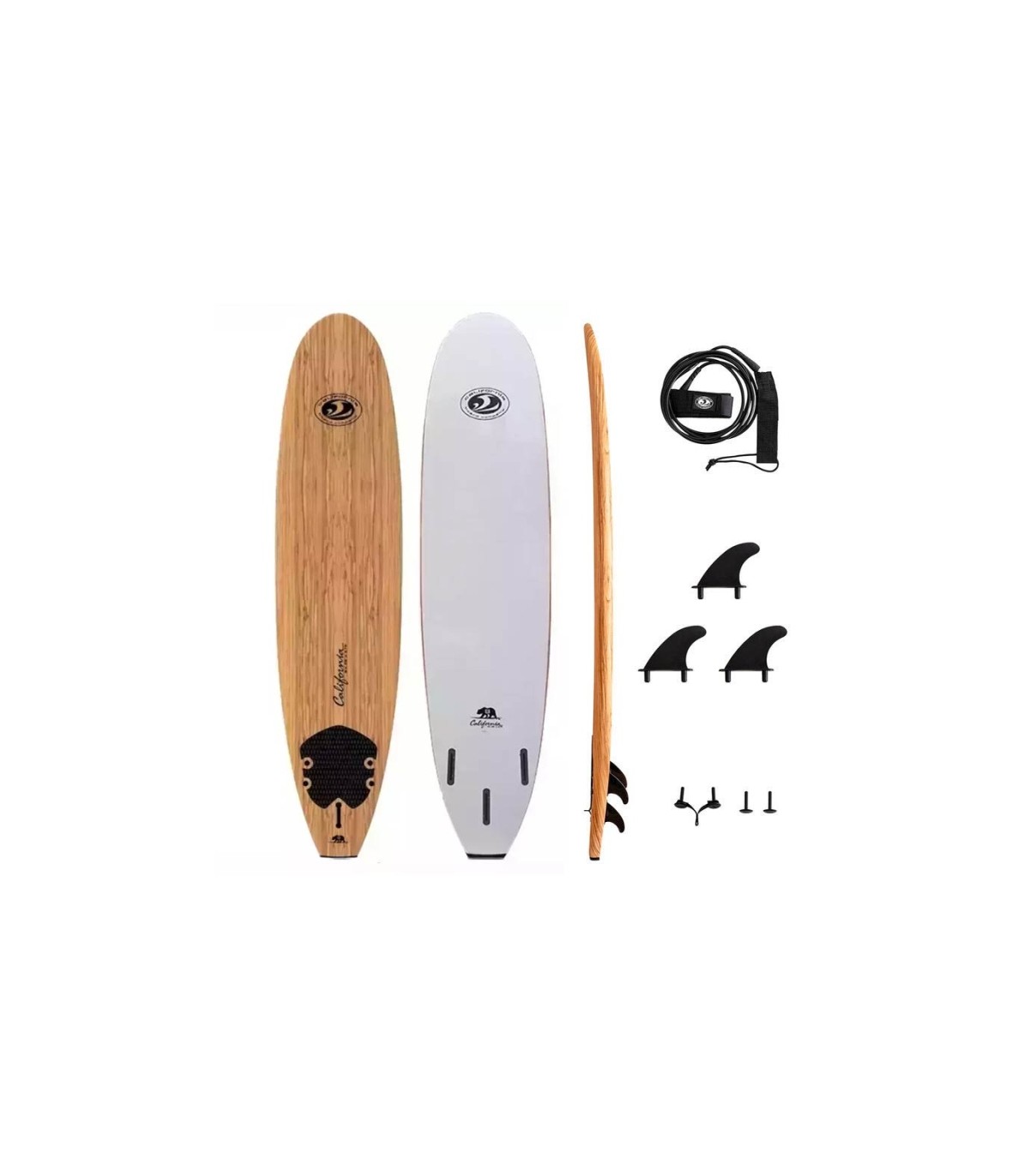 El Soft Surf Mini Malibu 8' CBC California Board Company en espuma EPS es la tabla ideal opara iniciarse y progresar de la manera la más segura posible. Fabricada con espuma EPS de alta densidad, es robuta y adecuada para todo tipo de surfistas ligeros o con mas peso para surfear en olas de 50 cm a 1 m 20. Es conocida por su facilidad de uso, su durabilidad, su divertido gráfico de madera que cubre toda la parte superior de la tabla y su precio asequible. Esta tabla de surf soft tiene un núcleo de espuma EPS impermeable con 3 almas de madera incorporadas para una estructura con flexibilidad, un deck en XPE / IXPE que apenas necesita cera para agarrarse y una carena dura de polietileno resbaladizo que se desliza suavemente sobre el agua. También cuenta con un deck pad en la parte trasera, un sistema tr-fin fácil de instalar y quitar; y viene con un leash de surf con una correa de tobillo acolchada de neopreno.